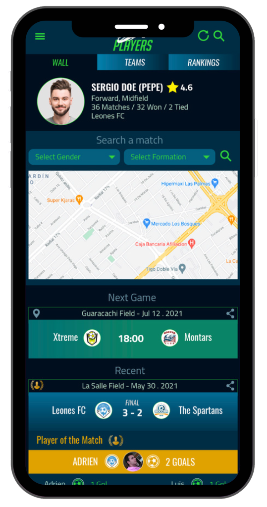 FUTPLAYERS es una App diseñada para el Jugador de Fútbol Aficionado donde pueden vivir la experiencia de «Sentirse como un Profesional”, con seguidores y aficionados. Además, los usuarios pueden encontrar partidos amistosos disponibles en cualquier momento y en cualquier parte del mundo.